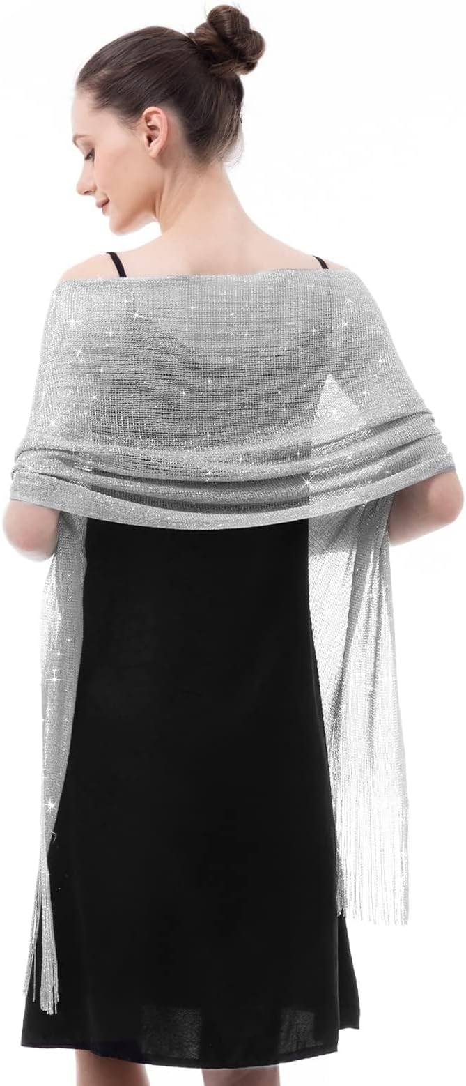 Sparkling Metallic Chiffon Shawls and Wraps for Evening Party Dresses Wedding Party Elegant Feeling