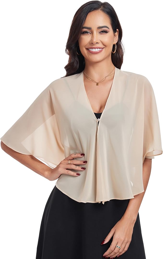 Sheer Shawls and Wraps for Formal Evening Party Chiffon V Neck Capelets for Women Wedding Guest Shawl