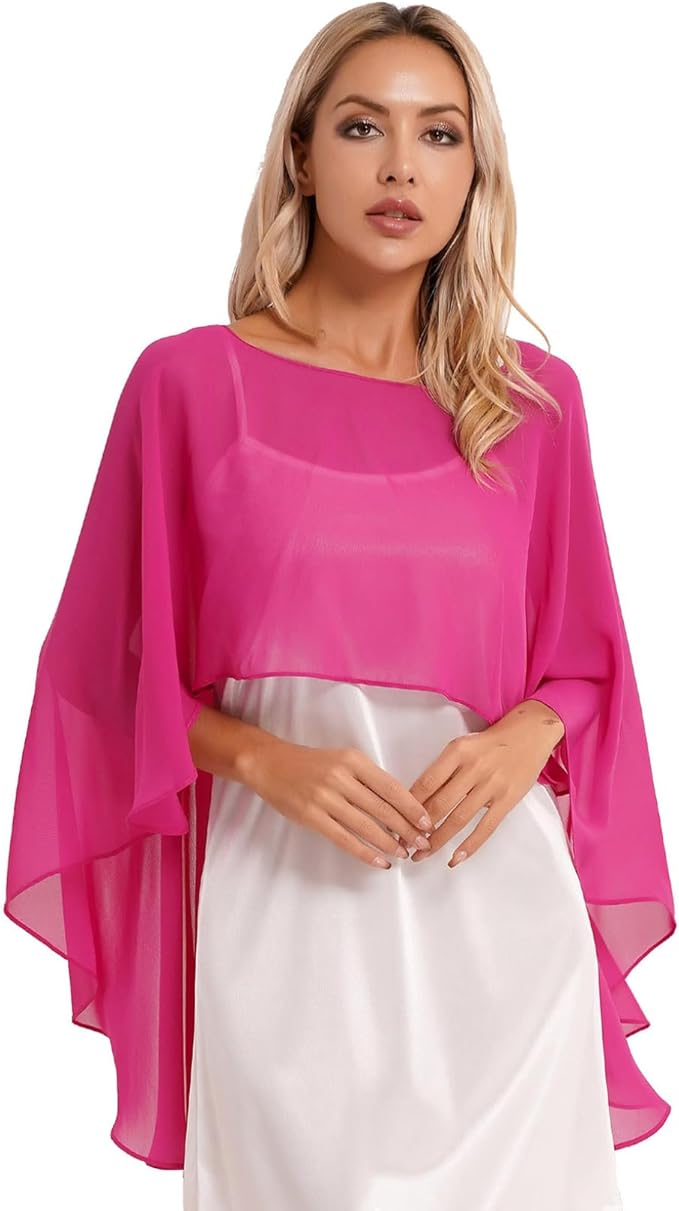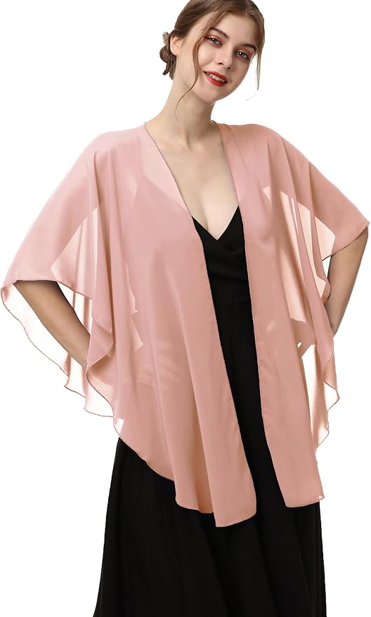 Women's Chiffon Cape Shawls and Wraps for Bridesmaid Wedding Capes Cover Up Evening Dress