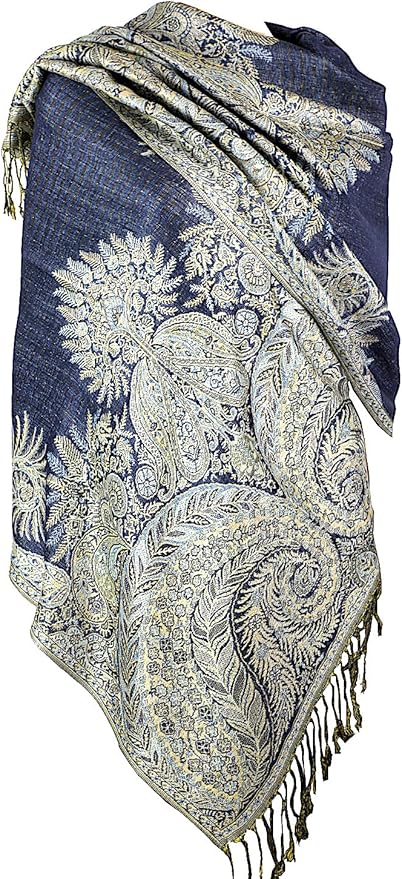Luxurious Double Layered Jacquard Big Paisley Pashmina Shawl Wrap Scarf