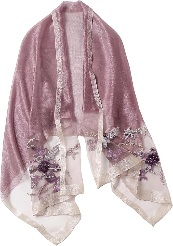 Silk Wool Fashion Scarf Shawl Wrap Lightweight Sheer For Women Floral Embroidery Wedding Party Prom